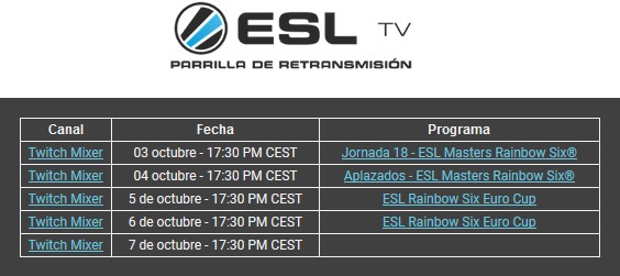 Llega la octava temporada de ESL Pro League CS:GO para disfrutar de los mejores equipos del mundo. La primera semana de competición arranca el día 2 de octubre a las 17:00 horas, abriendo la veda para disfrutar de 12 días de ESL Pro League durante el mes de octubre a través de los canales de CS:GO en Twitch y Mixer de ESL. (Calendario octubre en «parrilla de retransmisión»)