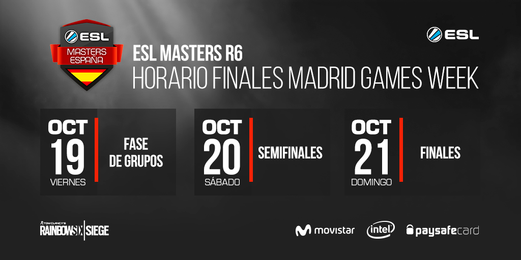 Los fans de Rainbow Six® Siege y todos los seguidores de los esports podrán disfrutar en primera persona de la Gran Final de ESL Masters Rainbow Six® los días 19, 20 y 21 con los seis mejores equipos de la primera temporada compitiendo por parte de los 16.500€ que hay en juego y alzar el trofeo de campeón nacional de Rainbow Six® Siege. Toda la Fase Final se emitirá en directo a través del canal oficial de Rainbow Six® en Twitch y en el dial 60 de MOVISTAR+ (Movistar eSports).