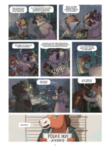 Y al igual que en la serie original, la selección de animales para mostrar la personalidad de los personajes es excelente. No sé si está genialidad es obra del guionista, del dibujante, o de ambos. Pero lo cierto es que es todo un éxito. Incluso una vez acabada la historia entiendes mejor algunas elecciones de diseño que son simplemente para quitarse el sombrero. No puedo hablar mas de esto pero si os interesa podemos desarrollar un poco esto en los comentarios.