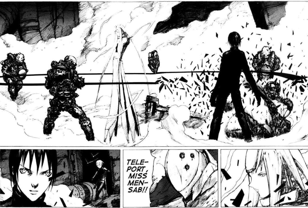 En terreno desconocido y sin poder utilizar sus armas, la pelea va francamente mal para Cibo y Killy hasta la intervención de Mensab y su fiel escudero Sew, que los salvan haciéndolos desaparecer como lágrimas en la lluvia por estar en el cilindro sin autorización.