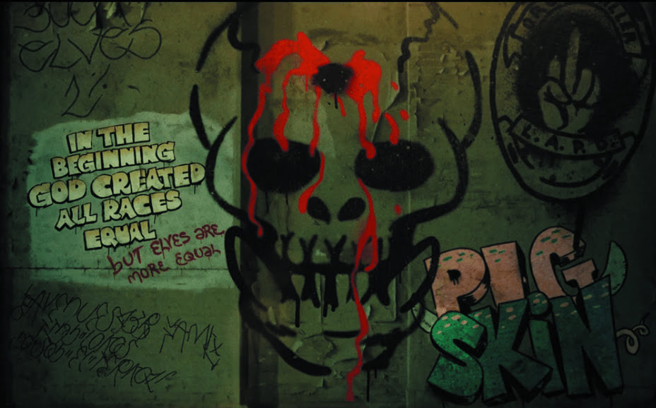 Pero lo que más puntos le hace ganar a “Bright” es su universo. Un Los Ángeles donde fantasía y magia se mezclan en la urbe, donde la relación entre razas, con su clasismo y su racismo, sus mafias, pandillas, sectas y grupos corruptos, tiene mucho que ofrecer al espectador. El ambiente en la película está muy bien desarrollado, aunque quizá poco aprovechado. Basta ver los primeros minutos de imágenes de grafitis, que explican de un vistazo las tensiones existentes en la ciudad, para darse cuenta del mar de posibilidades que “Bright” ha puesto al alcance de sus desarrolladores.