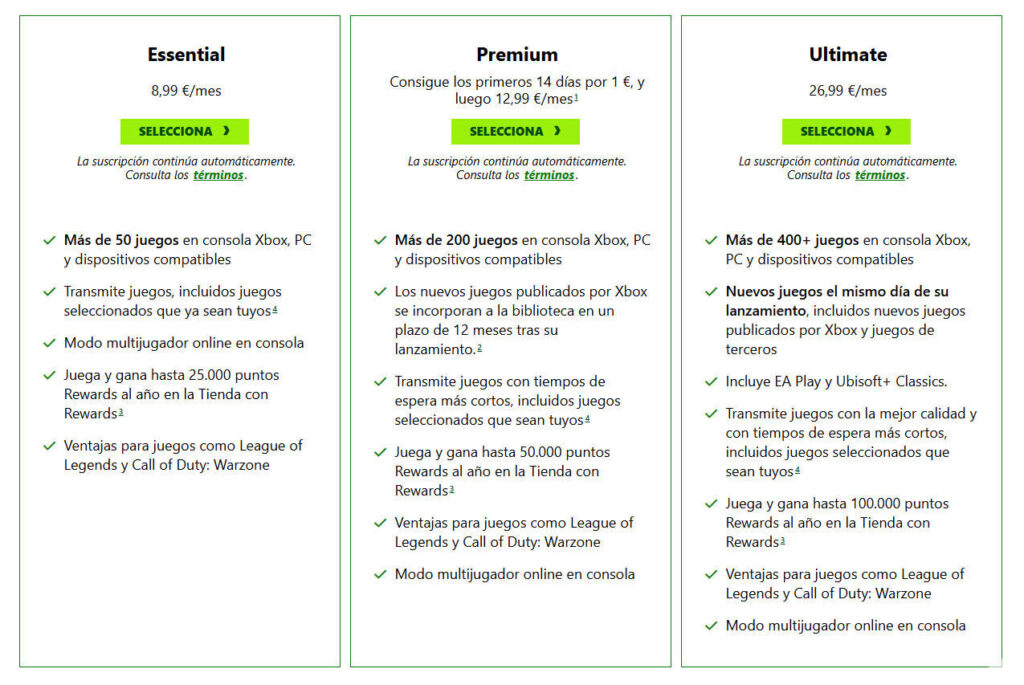 Como era evidente, esta modificación del sistema Game Pass también trae consigo una serie de cambios en el precio de cada plan.