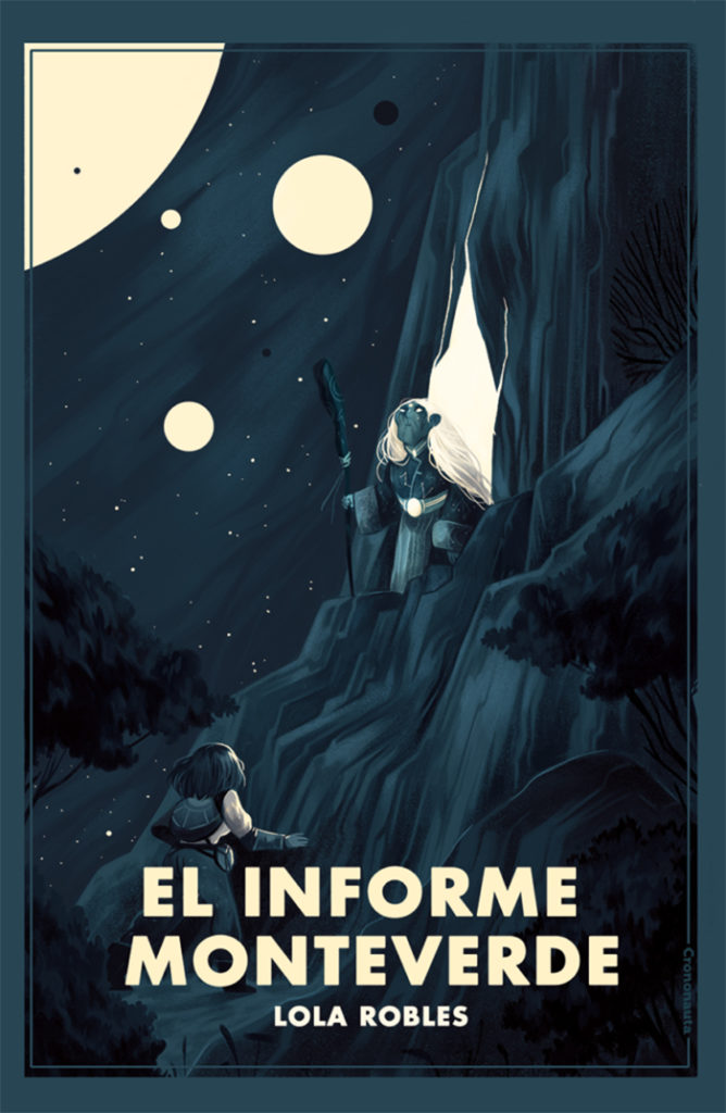 La editorial Crononauta ha desvelado la portada de su próximo libro, «El informe Monteverde» de Lola Robles. Un trabajo realizado por la ilustradora Marina Vidal, que refleja el encuentro de la protagonista con uno de los misteriosos fihdia en el Planeta Paraíso.