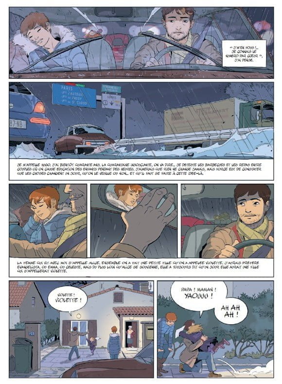 En esta autopista al infierno está Hugo, un “joven” francés cerca de los cuarenta (yo pongo las comillas, que cada uno las interprete como quiera) que sobrevive como rotulista de cómics, con una pareja, Alice, que trabaja como dependienta en una cadena deportiva, una hija pequeña y una madre que liga por internet para encontrar casa.