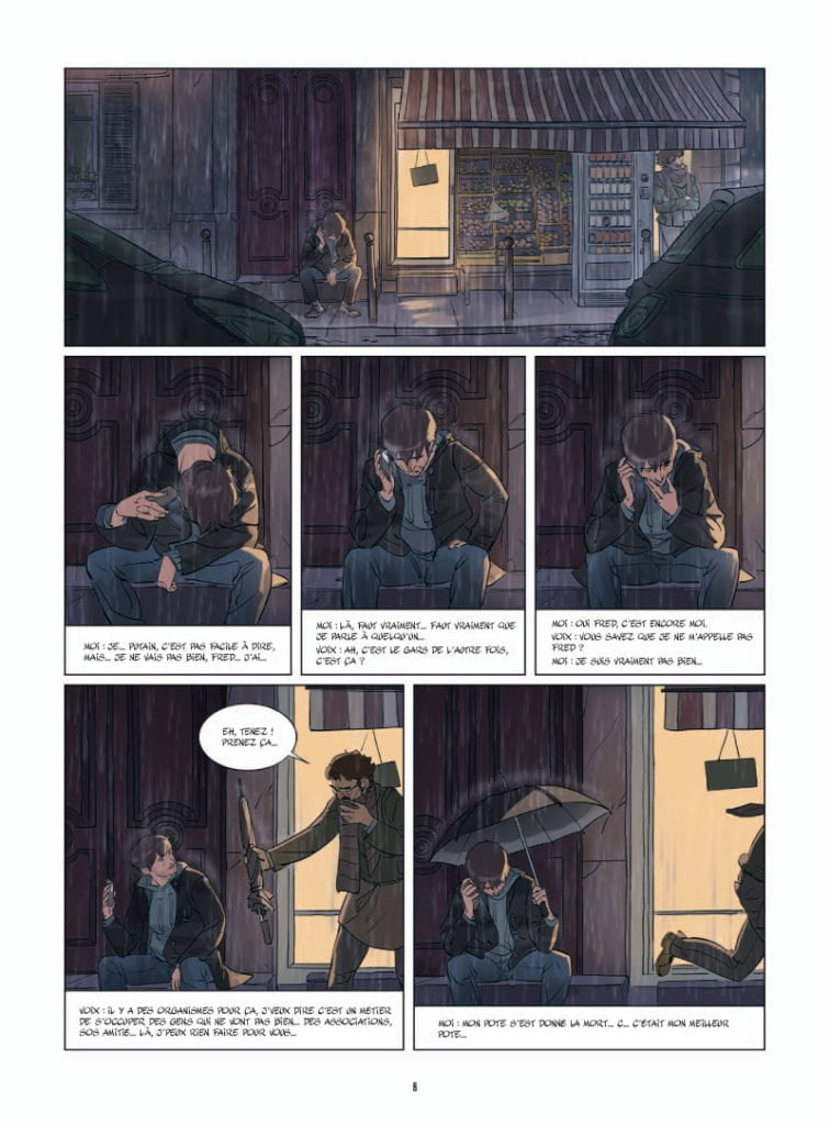 Como no solo de Sartre vive el hombre, el guion de Jim pivota sobre otros temas como la familia o la amistad y toca muy hábilmente cuestiones de índole social como la precariedad laboral, a la que están sometidos todos los personajes del cómic sin excepción, y fenómenos culturales como el recurso a las series como vía de escape.