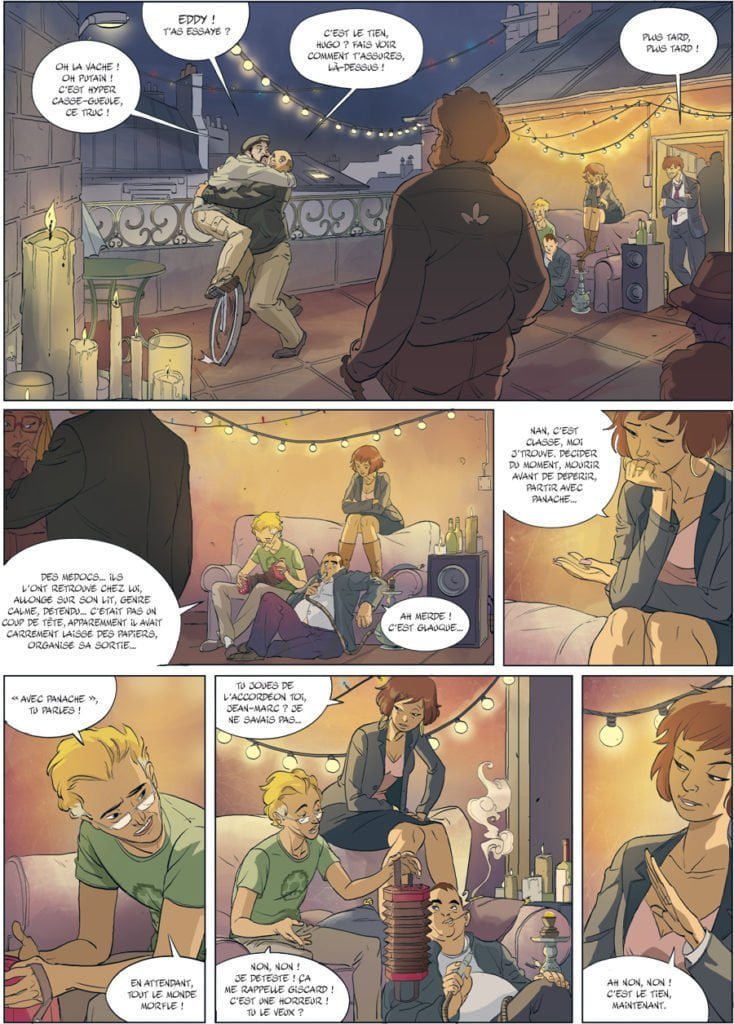 Ellos, los otros dos miembros de la pandilla, se encuentran en parecida tesitura. Étienne es un aspirante a actor que ha acabado trabajando de camarero y Jean-Marc, el artista friki del grupo, se gana la vida como programador en una empresa de telefonía. Hugo, por su parte, todavía no pierde la esperanza de convertirse en guionista de cine o televisión aunque lo único que le ofrezcan sea escribir biografías de baratillo de “grandes personalidades”.