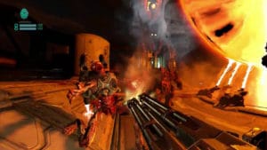 Volvemos una vez más a las instalaciones de la UAC en Marte, pero en esta ocasión no controlamos a nuestro Doomguy de rigor, sino a un técnico cualquiera que es asesinado por uno de los demonios que invaden la estación, para regocijo de la gente que nos esté viendo jugar con el casco. Sin embargo, en vez de desaparecer para siempre, por algún motivo sin explicar nos colocan en un cuerpo robótico que nunca veremos. Con ello se intenta justificar que un humano estándar pueda hacer frente a las hordas del infierno y a la vez ir teletransportándose por ahí. Por lo demás, nuestro objetivo es evitar problemillas con los núcleos de energía y para ello tendremos que ir transportándonos a diferentes zonas y escenarios que ya vimos en el juego original.