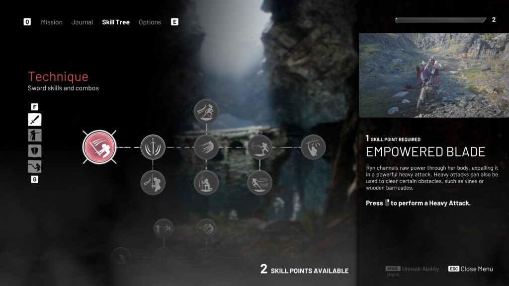 Las habilidades de Ryn son, aunque divertidas de usar, muy simples. Lo que esperas cuando juegas a este título con un sistema de magia novedoso es que, por lo tanto, las habilidades de los personajes así lo sean. Sin embargo, cuando las vas probando por primera vez consisten en empujar a los enemigos, cargar ataques con la espada…