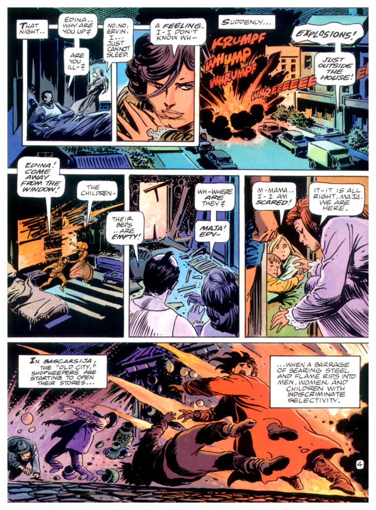 A lo largo del cómic Kubert deja constancia de los múltiples e infructuosos intentos de los amigos y colegas de Ervin por sacar a la familia Rustemagic del infierno de Sarajevo, convertida también en un limbo burocrático; y de la solidaridad surgida entre vecinos y conciudadanos para lidiar con la tragedia que se cernía sobre sus vidas.