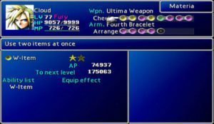 Así, los 9 personajes del juego gozaban de una libertad absoluta en lo referente a los combates, podíamos personalizar su rol en ellos como queríamos equipándolos con las materias que creíamos oportunas de cara a afrontarlos. Los personajes subían de nivel con la experiencia ganada en ellos, mejorando sus atributos, pero la materia también lo hacía convirtiéndose en más poderosa e incluso espectacular (este es el caso de la magia relámpago por ejemplo, que a nivel 1 solamente estrella un rayo contra el enemigo y a nivel 3 convoca una auténtica tormenta eléctrica sobre él).