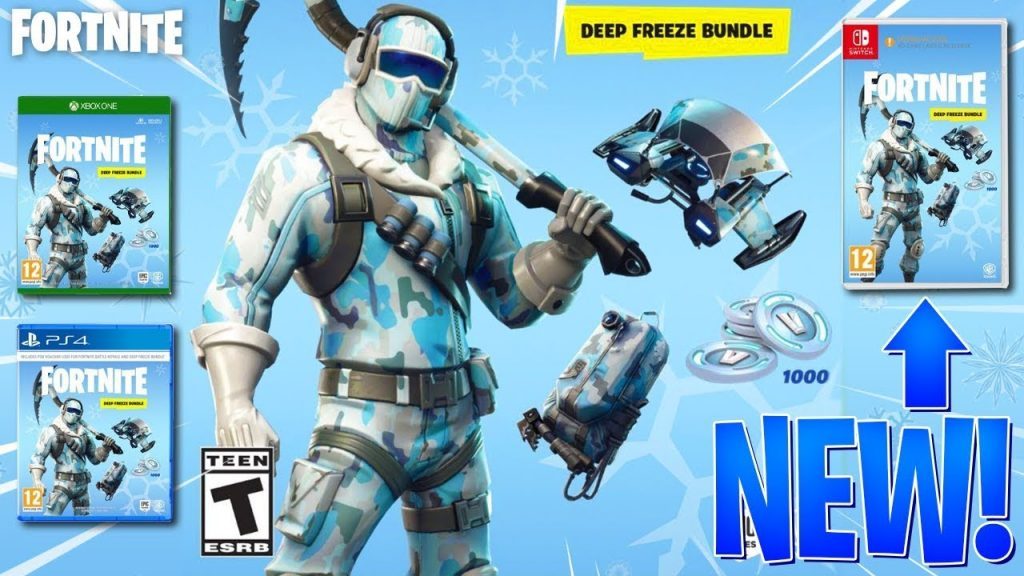 Fortnite: Lote de Criogenización incluirá el juego Fortnite Battle Royale, contenido premium, como el traje de granizo, el accesorio mochilero punto de congelación, el pico piolet y el ala delta frente frío y 1.000 V-Bucks, que podrán utilizarse para comprar objetos del juego, como skins y Premium Battle Pass.