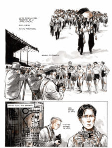 Fotógrafos de Guerra es un excelente cómic siempre que no busques leer un cómic. Esto puede sonar raro, pero es lo más sincero que uno puede decir. Porque como se ha mencionado varias veces durante este artículo, lo que tenemos aquí es un reportaje ilustrado. Esto se siente desde las primeras páginas, donde la historia de Namuth y Reisner se mezcla con la Guerra Civil española y el cómic evoluciona a algo más: a un reportaje no solo sobre la citada guerra, sino también se convierte en un reportaje sobre la labor que realizan los protagonistas para conseguir fotografiarla. Sus vidas y su trabajo se convierte en el reportaje que hay tras Fotógrafos de guerra.