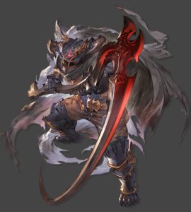 Este totémico guerrero Draph, pertenece a la sociedad junto con Zeta. Él tiene un pacto formado con la gran Guadaña Grynoth su arma del sello.