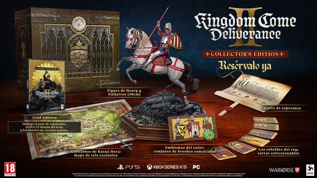 Tendremos hasta 3 ediciones para elegir a la hora de comprar: la edición Estándar, la edición Gold y la edición Coleccionista. La edición Gold incluirá contenido adicional y un pase de expansión para los futuros DLCs que irán añadiendo a lo largo del año. En cuanto a la edición Coleccionista nos ofrecerá coleccionables como una figura de Henry y su caballo Guijarros de 30 centímetros, un mapa de Kutná Hora de tela y algunos objetos temáticos.