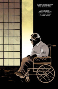 El dibujo de Víctor Santos está claramente influenciado por las películas de Kurosawa. Se nota en los rasgos de los personajes, pero todavía se puede observar mejor más en la adaptación de los carteles y escenas de los largometrajes de los que se habla entre estas páginas y que podemos ver en una o dos páginas completas.
