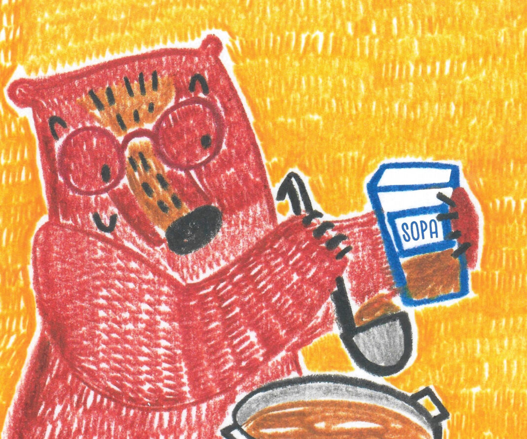 De entrada, les niñes no lo van a entender. Incluso diría que muchos adultos tampoco, sobre todo si se limitan a hacer la lectura superficial del cuento de antes de dormir. ¿Un oso que se pone triste porque se le acaba la sopa, hasta que hace más? Sin embargo, si lo contemplamos con un poco más de cuidado, algo más de mimo, nos encontramos con algo tan tierno como melancólico.