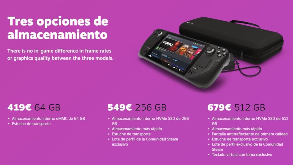 Lo curioso es que actualmente en España este modelo ya no está disponible, quedando sólo dos opciones para aquellos nuevos usuarios de Steam Deck.