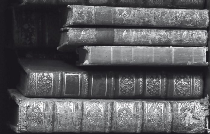 De poco más de doscientas páginas y bien encuadernado en rústica, la cubierta de este libro muestra una fotografía en blanco y negro de otros libros más antiguos. Ensayos de Montaigne de títulos borrados, quizá.