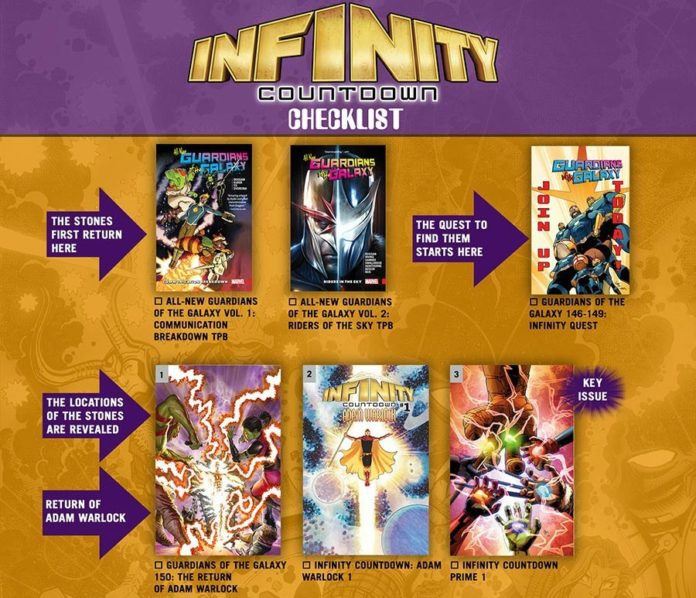 Se trata de una nueva saga cósmica protagonizada por Warlock y los personajes cercanos a su entorno, en lo que podríamos traducir como Cuenta Atrás para el Infinito. Algo se mueve en la parcela cósmica de Marvel desde hace un tiempo. Una vez finalizaron las Secret Wars dejamos al matrimonio Richards con sus hijos rehaciendo el multiverso. A su vez distintas entidades cósmicas se han visto alteradas, siendo algunos de los casos más significativos los de Galactus o Eternidad. Y en la actual etapa de los Guardianes de la Galaxia a cargo de Gerry Dugan algo está ocurriendo en relación a las Gemas del Infinito y Adam Warlock. Y ahora ya ha quedado claro con el nuevo cheklist que la editorial ha lanzado.