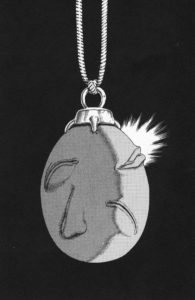 Pero lo realmente importante de este cierre de arco es lo que ocultaba la armadura de Griffith: ¡el Beherit que tiene por colgante! Por supuesto, y a diferencia de nosotros, en este momento de la aventura ni Guts ni Griffith —aparentemente— tienen idea de qué es o para qué sirve el huevo del conquistador además de como bisutería creepy.