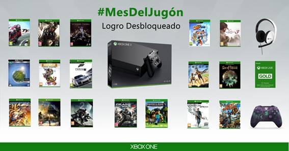 Durante el mes que dura el reto Logro desbloqueado de Xbox España*, sumaremos el gamescore de los jugadores residentes en el país. El jugador que reúna más puntos de logros durante ese tiempo se llevará el mayor premio que hemos dado en Xbox España en los últimos tiempos. Este incluirá una Xbox One X, un auricular oficial para Xbox One, suscripción a Xbox Live Gold, muchos juegos, una película en formato Blu-Ray 4K y un mando edición especial de Sea of Thieves.