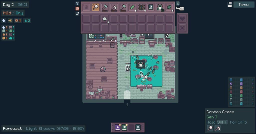 Por una parte, el empleo de la genética para crear variaciones nuevas de ranas, las cuales incluso podrán lucir un sombrero curioso. Para ello, también podrás emplear setas y otros recursos como el lodo mágico para producir, a su vez, otros utensilios con cuya interacción las ranas mutarán todavía más.