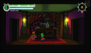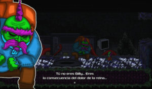 Esto no ocurre en NIghtmare Boy. Al poco rato de jugar acabé completamente desinteresado en la historia y el diálogo en los personajes que, al menos en su versión en castellano, queda vacío y soso. Me encontré pronto deseando pasar los diálogos rápidamente y lo único que me frenaba de hacerlo era la necesidad de escribir este análisis. Y volviendo un segundo a los personajes secundarios, en algún momento del juego rompen la cuarta pared de maneras que no le sientan bien.