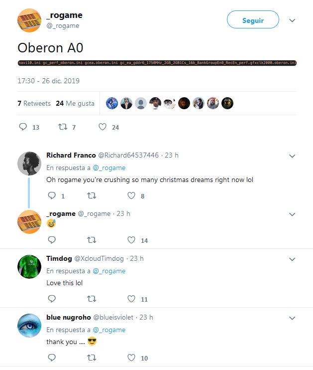 De acuerdo con un dataminer,(_rogame) que se dedica a ver información en archivos, sitios web y actualizaciones de drivers de AMD, Oberon —como se le conoce al nombre en clave de la Gpu de PS5—, solamente alcanzaría entre unos 9 y 10+ Tflops de poder computacional en su gráfica; esto es significativamente menor a los 12+ Tflops que Microsoft presume en su Series X. La cosa, se complica cuando varias voces hablan acerca de Lockhart (Xbox “pequeña”, Sparkman) tendría un rendimiento similar al de PS5 (por ancho de banda). Toda esta información está basada —de acuerdo con _rogame— en las pruebas internas de AMD de Junio/Julio.