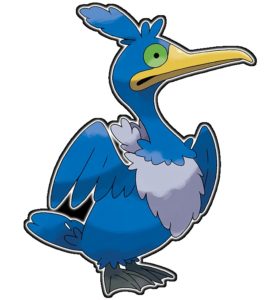 Cramorant – Un Pokémon cormorán, que como se esperaría de su contraparte real, siempre esta devorando algún pez. Lo que hace único a este Pokémon, es su habilidad para devolver golpes; cuando se le ataca y esta tragando a un pez, el golpe lo hará escupírselo al enemigo, causándole algo de daño. Esta habilidad se activa después de usar otra como Buceo o Surf. Es un tipo Agua y volador.