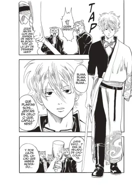 Siguiendo la lectura, llegamos a un punto en el que Gintoki se enfrenta en un duelo con el jefe de la policía secreta, quien está enamorado. Esta historia está llena de acción y risas, mostrando la habilidad de Sorachi para crear personajes memorables y situaciones hilarantes. El jefe de la policía secreta, conocido por su dureza y seriedad, se encuentra en una situación cómica cuando sus sentimientos amorosos salen a la luz. La verdad es que es una de las sagas que más nos ha gustado desde su lanzamiento.