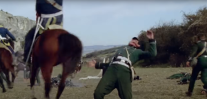 Y quizá esa falta de medios es la que crea la magia. Hay numerosas escenas de batalla en la película pero la que más me marcó fue cuando los Chosen Men, enviados a una ladera como forma de reírse del advenedizo teniente Sharpe, presencian cómo los franceses exterminan al resto de sus compañeros, que están descansando en un claro. No pueden hacer nada, aunque Harper y otros intentan bajar, pero Sharpe los detiene porque la masacre está consumada y, al menos ellos, deben sobrevivir.