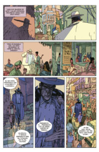 Pero algo que destaca principalmente es la paleta de color que utiliza para crear esta historia. Un uso de los colores que ofrece una historia única, y que juega muy bien con la riqueza de colores de las especias y de la idea que tenemos de la India. Con un Rubin que destaca entre la multitud por su gran tamaño y su traje blanco, rompiendo con la riqueza cromática del resto de la escena.