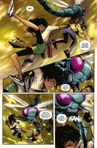 El dibujo de las viñetas complementa perfectamente esta aventura de ciencia ficción. Los personajes son perfectamente reconocibles y el paisaje y los detalles son plasmados y coloreados de una manera ideal para situarnos en la historia.