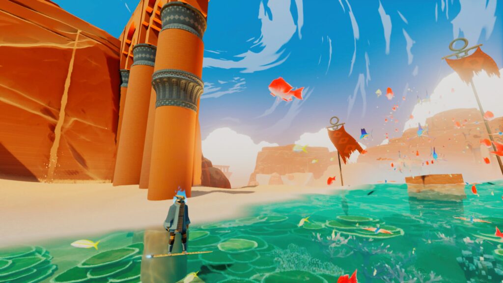 Los entornos, que hacen gala de un manejo de los colores y efectos de luz inmejorables por parte del equipo de Giant Squid, son preciosos. Puedo decir que el confrontamiento de desierto o arena en contraposición al mar nunca antes se había diseñado tan bien artísticamente hablando para un videojuego.