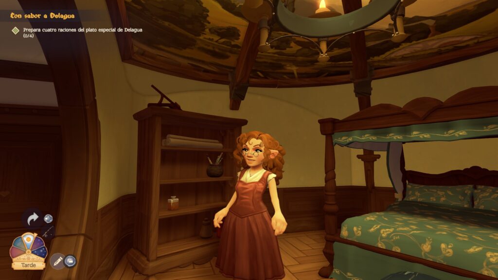 Tras pescar y hacer dos o tres cosas más te sobrará un tiempo de juego bastante grande que tendrás que invertir en procrastinar un poco para poder avanzar de día, ya que no puedes dormir en tu cama hobbit durante la mañana.
