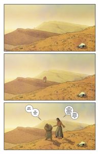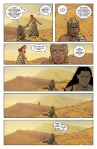 Las tonalidades que consigue dar a las distintas épocas ayudan al lector a situarlas en la temporalidad sin ayuda de números que les sitúen. Esto, acompañado a la paleta de color que utiliza con la aparición de cada dios para centrar la atención en él hacen de Wilson un elemento clave en este volumen (como en todos hasta el momento). Y esto sin tener en cuenta todo lo que hace de forma excepcional en cada tomo, página y viñeta.