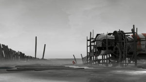 Con pocos elementos en pantalla, encarnamos lo que parece ser un pequeño humano vestido de rojo en un mundo gris y vacío, postapocalíptico en primera instancia. Sin instrucciones ni un indicador que nos diga qué debemos hacer y cómo, pronto nos subimos a un vehículo muy particular, una especie de barco con ruedas que nos acompañará en todo momento. Nuestra misión principal es, básicamente, avanzar. Aprender por nuestra cuenta a controlar los diversos mandos de la nave y disfrutar del paisaje mientras intentamos descifrar qué ha pasado, quiénes somos y cuál es nuestro objetivo. Gran parte, como comentábamos en la introducción, viene representada de forma muy implícita, dejando un gran margen a la interpretación de cada uno.