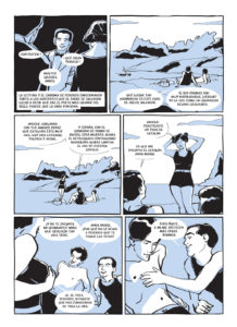 La paleta de colores empleada por Palomo se limita al negro y a un tono azul claro. En las últimas páginas del libro se restringen aún más, con escenas desnudas de color y hasta de trazo, que son apenas bocetos en blanco y negro. Un hallazgo, aportar dramatismo a través de un minimalismo ascético.